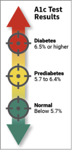 To see long-term effects of a lifestyle program incorporating a CGM device, ask your doctor to check or recheck your A1C level. A1C is a simple whole-blood test that gives a 3-month average estimate of blood sugar levels in your blood. The lower you can go below 5.7, the better. An A1C of 5.7-6.4 indicates pre-diabetes.